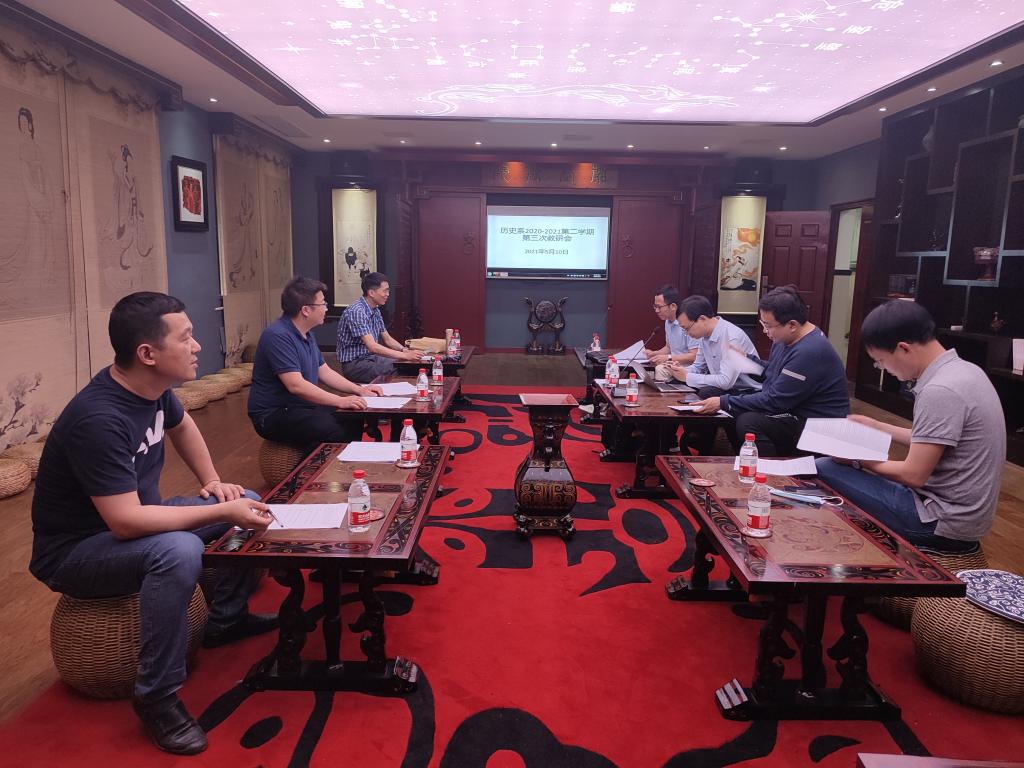 (历史系供稿)5月10日下午4点,历史系在兰台书院召开本学期第三次教研会。本次会议的主要内容有两个:一是修订中国史、学科教学(历史)硕士研究生人才培养方案,二是围绕公司近期工作安排,进一步加强师德师风教育。参加本次教研会的同志有:陈力、李义芳、余劲东、周中梁、卢川、赵标、余静贵、向会斌。教研会由系主任卢川主持。