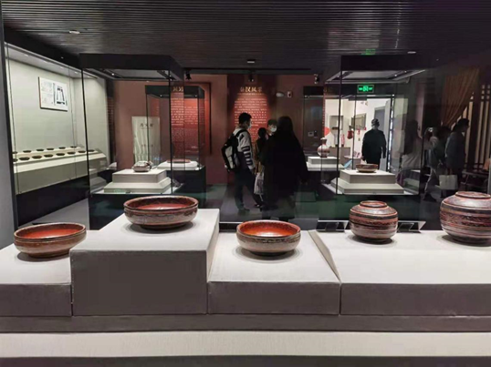 员工认真参观漆器艺术展厅