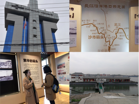 在文公司老师余劲东的指导下,袁方晴、冯言赴三处进行调查。两人先参观了重建的南门天主堂,采访了住在天主堂的老人,了解了教堂的发展历程。随后,两人参观了码头文化馆,并采访了文化馆负责人跃进路社区副书记王实娇,了解他们创建此馆的想法以及对沙市近年来发展的感受。最后,两人来到巡司港轮渡码头参观,明确了码头发展现状。