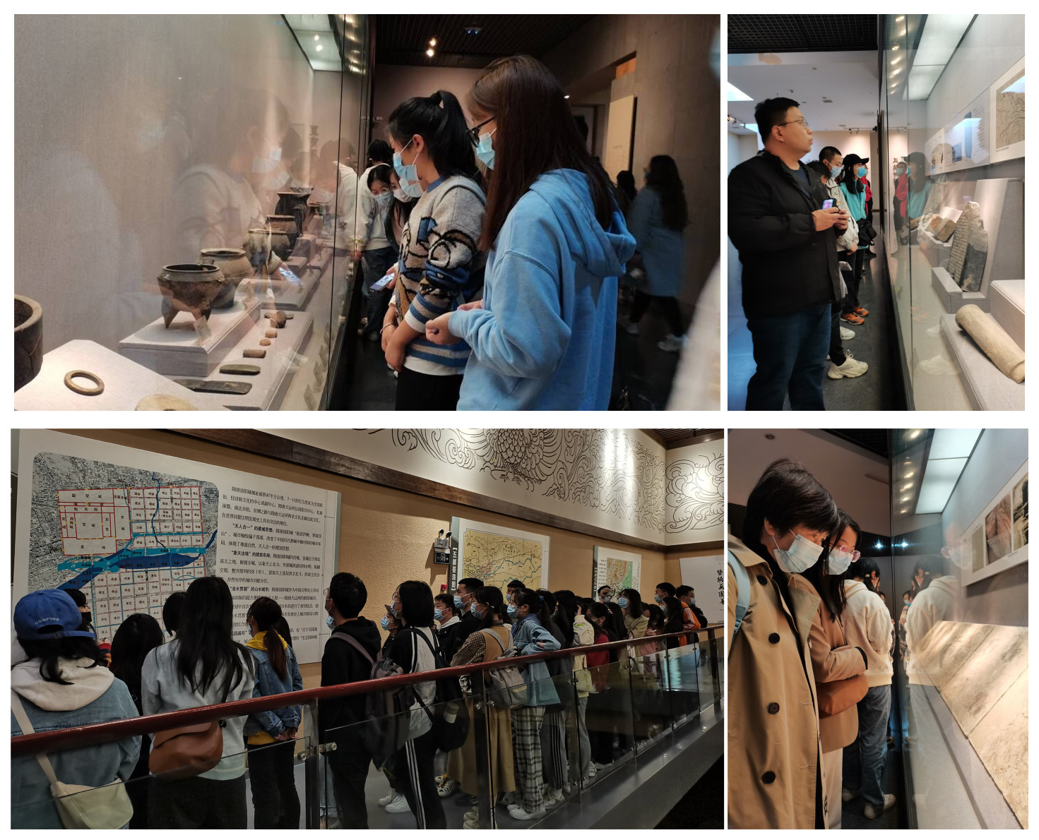本次历史遗迹考察点主要有:白马寺、洛阳博物馆、偃师商城博物馆、二里头夏都博物馆、天子驾六博物馆、隋唐大运河博物馆、洛阳八路军办事处纪念馆、洛阳民俗博物馆、龙门石窟等。同学们在洛阳博物馆参观了琳琅满目、瑰玮神秘的文物,领略华夏文明的灿烂与辉煌;在白马寺感悟中外佛教文化的交流和融合;在龙门石窟,透过数以万记的佛造像,看到了千年佛教的兴衰历程;在考古博物馆,回看代代考古人的故事,充分感受到了建设中国特色、中国风格、中国气派考古学的魄力,更好地认识到了源远流长、博大精深的中华文明。