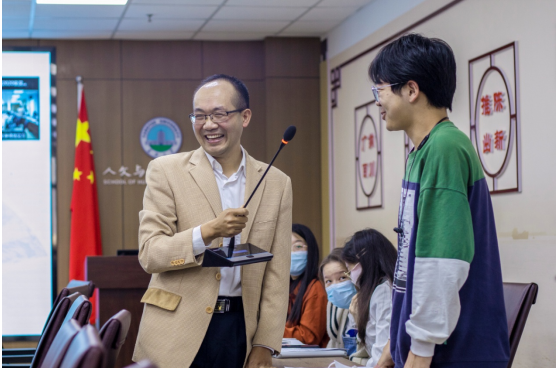 (通讯员 胡新梅)为提升公司汉语言文学师范生的中学语文教育认知水平,提高中学语文教学能力,传递中学语文一线教学经验,2022年11月7日下午,公司兼职硕导、荆州市实验中学语文特级教师黄祥斌老师受邀作学术讲座。讲座于文科楼705会议室举行,由公司副经理杨家海主持,中文系秦鹏举、章芳、袁咏心等教师出席。2020级中文师范专业1、2班同学现场参加,其他师生线上参加。
