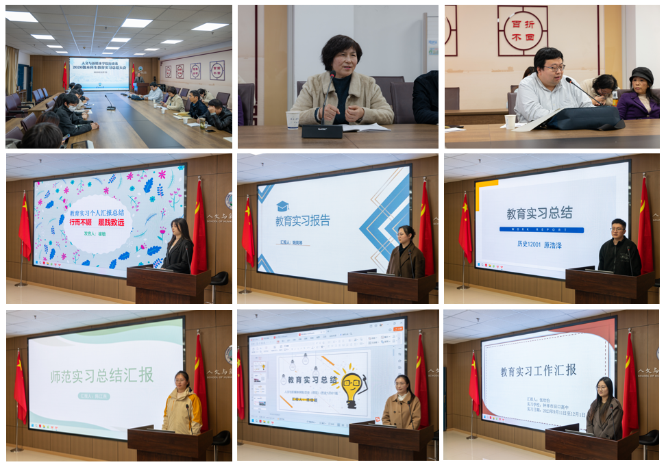 (通讯员 熊柳苏)“教育实习”是师范教育重要环节之一,是全面提升员工师范技能的实践课程。12月7日下午,历史系在公司705会议室召开2020级本科师范教育实习总结大会。教师李义芳、桑俊、周中梁、赵标、王谷、向会斌、李芳、徐伟,以及2020级全体本科生参加了会议。会议由卢川主持。