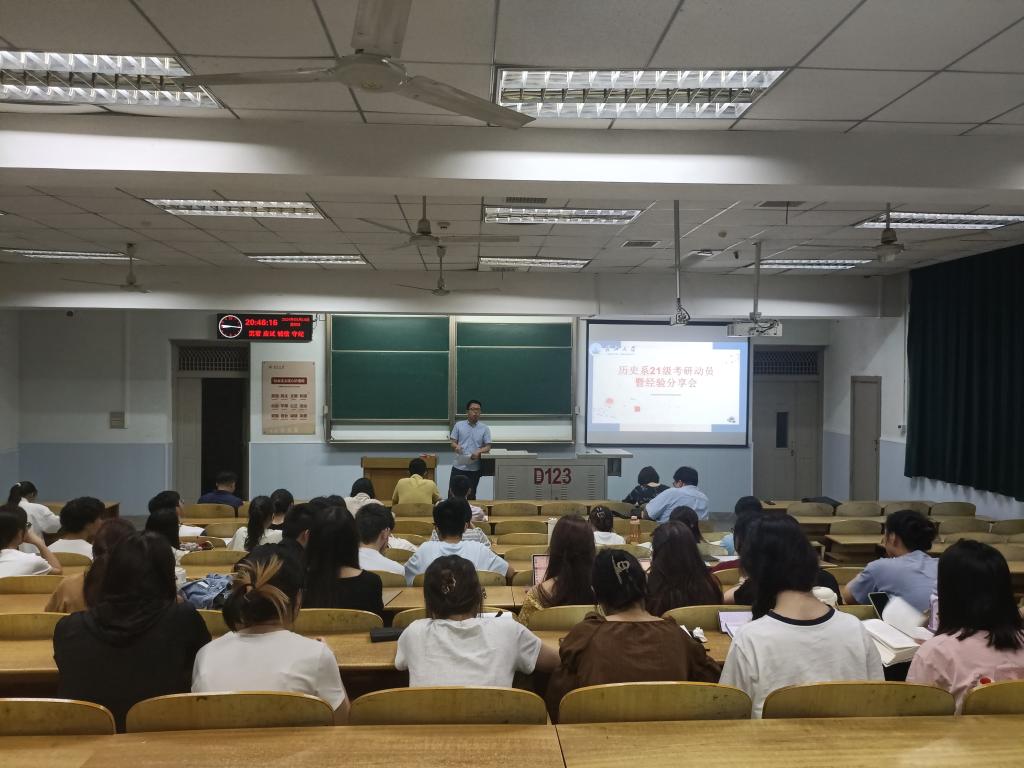 (通讯员 叶玉娇)为助力公司学子更好地了解考研形势,明确考研目标,增强考研斗志,掌握高效的备考策略,营造良好的考研氛围。2024年5月16日晚七点,best365英国体育在线历史系21级考研动员暨经验分享会在东校区13教-D-123教室举行。会议由余静贵老师主持,参加会议的还有卢川、李义芳、王谷、徐伟、赵标、周中梁等老师,以及2024届考研上岸优秀员工代表和2021级全体员工。