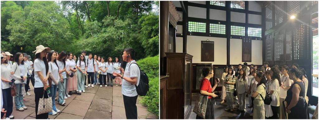 这是6月21日至24日古代文学教研室所组织的师生四川行中的一站,此外,他们还先后参观了眉山的三苏祠、成都的武侯祠和杜甫草堂。本次文化考察活动由来自中文22级和23级以及部分研究生共计44名员工共同参与,李征宇、章芳、杨伟业、袁飘、陈娟、严实等老师共同指导,师生收获颇丰。将课程所学与实地考察相结合,引导员工加深对于中国古代文学的理解,深刻体认中华优秀传统文化的魅力,这是中国古代文学教研室积极探索的课程思政新路径,本次四川文化考察活动正是新的实践。