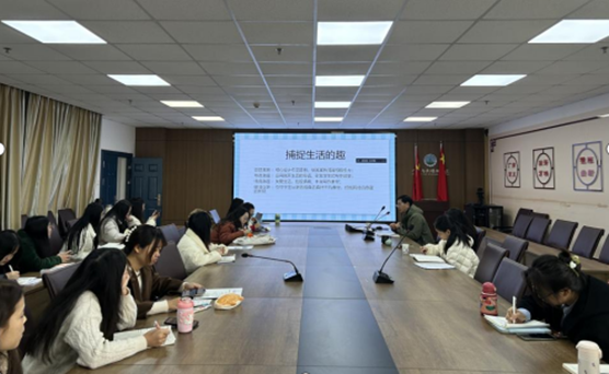 何老师的讲座围绕“如何让作文变得有趣”展开,何老师依据多年一线教学经验提出了两个关键点:捕捉生活的趣、描述生活的趣,强调引导员工写作联系日常生活。其次,何老师列举了自己在教学中设置的作文题目来说明作文教学中的细节,尤其强调了落实和情感。