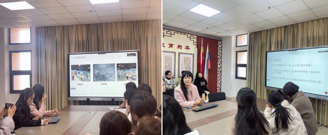 接着,参赛选手代表范亚楠、宋吉祥同学先后进行汇报。范亚楠同学从竞赛规则、赛前准备、赛后总结三个方面总结了自己的经验:课程中心要“小而精”,课程名称要“准而新”,课程环节要“紧而跟”。同学们一致认为范亚楠同学的分享非常全面而有效,收获颇丰。宋吉祥同学着重以自己在备课时的一段独特经历切入,向同学们展示了备一节好课需要具备的能力。她指出文本是最重要的参考,一定要熟悉;要根据文本的特点抓住细节进行讲授。