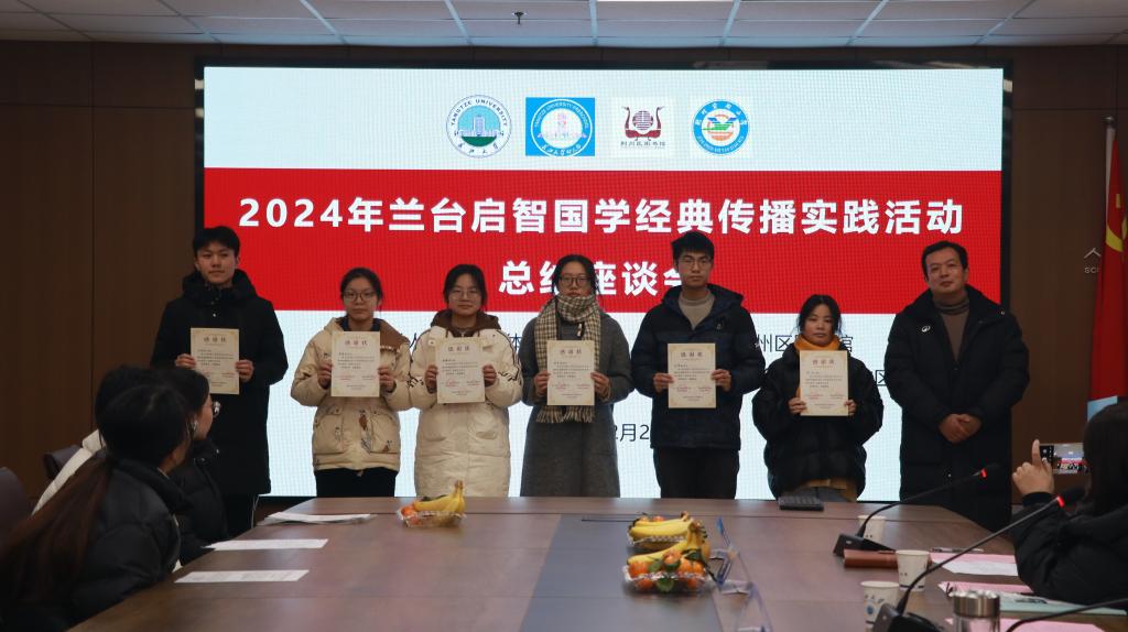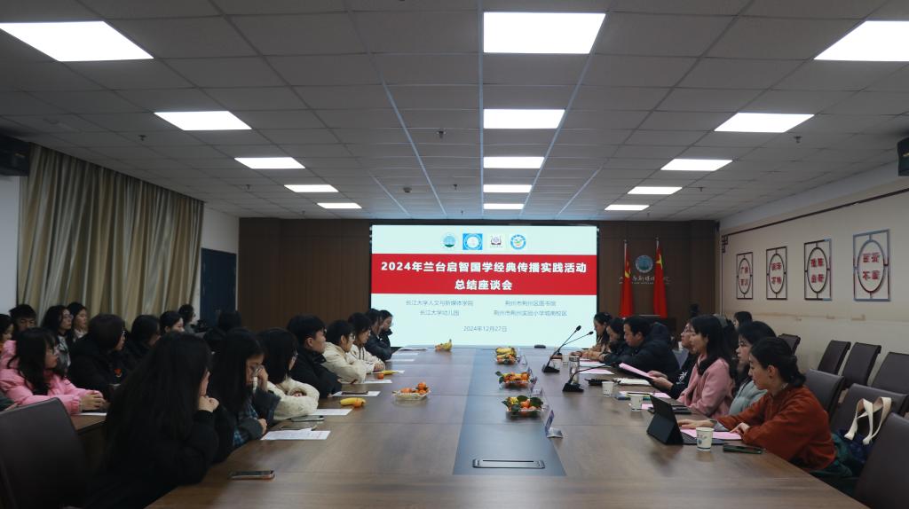 12月27日上午,公司与荆州市荆州实验小学城南校区、best365英国体育在线幼儿园在文科楼705会议室联合召开兰台启智国学经典传播实践活动总结座谈会。荆州市荆州实验小学城南校区董事长胡载鑫、best365英国体育在线幼儿园园长朱雨、荆州市荆州实验小学城南校区办公室主任盛小珊、资深教师张青、公司副经理李征宇、教师杨蓉、杨伟业和参与本次国学实践教学课程的同学参加座谈会。会议由杨蓉老师主持。