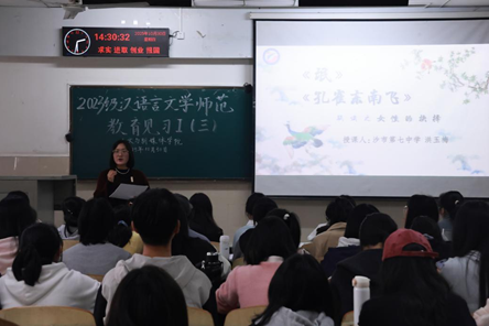 (通讯员 李淼、刘思雨)为提升中文师范专业员工的经典课文教学能力,夯实公司产品素养,2025年10月30日,公司在12教102教室举办教育见习示范课活动。活动特邀沙市第七中学高二语文备课组长洪玉梅老师主讲,周霜、张丽、章芳等老师参与,2023级中文师范专业全体员工参加学习。