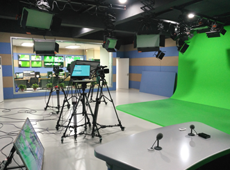 虚拟演播实验室能够满足电视摄像、布光、导播、绿幕抠像等要求。可以实现完全的多机位虚拟演播、录播功能,灯光系统完全按照虚拟演播室照明要求,保证主体人物绿幕抠图质量,主要培养员工电视节目的制作能力。实验室配备有绿箱、高清摄像机、全场景真三维虚拟演播室系统、视频特技切换台、信号监视系统、调音台及音响设备、提词器、导播通话系统、无线通话系统、调光台及灯光系统、高清非线性编辑工作站等。