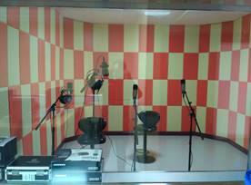 音频制作实验室具备录音和播音两大功能。录音室主要用于数字录音技术、广播电视节目后期制作等课程的实践教学,培养员工掌握录音工艺在各个技术环节所涉及到的专业知识,并能够熟练操作相关录音软、硬件设备;播音室用于电视节目主持、电视新闻播音、综艺节目主持、谈话节目主持、话筒前语音艺术等专业课程的基础实训课程。主要内容有拾音、调音、录音、声音编辑、后期音效合成等技术与原理的基础实验,影视作品的配音创作等领域的实验与创作。主要设备有音频工作站、数字音频处理系统、调音台、专业录音话筒、话筒放大器、录音耳机、耳机放大器、监听音箱等。