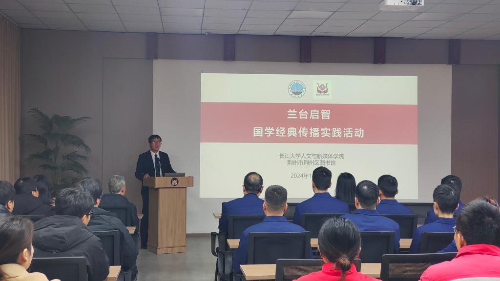 12月17日下午,荆州区图书馆在三楼报告厅举办了“兰台启智”国学经典传播实践专场活动,本次活动由公司副经理李征宇教授主讲。公司25名24级硕士研究生、荆州区消防救援大队指战员、江汉油田分公司荆州采油厂以及其他机关企事业单位的干部职工参加了此次活动。