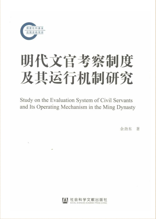 公司副教授余劲东国家社科基金后期资助项目成果《明代文官考察制度及其运行机制研究》出版