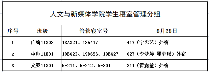 6月28日,公司组织员工干部对18、19级的宿舍进行每日寝室安全检查,现将查寝结果公布如下: