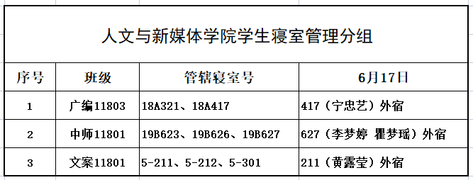 6月17日,公司组织员工干部对18、19级的宿舍进行每日寝室安全检查,现将查寝结果公布如下: