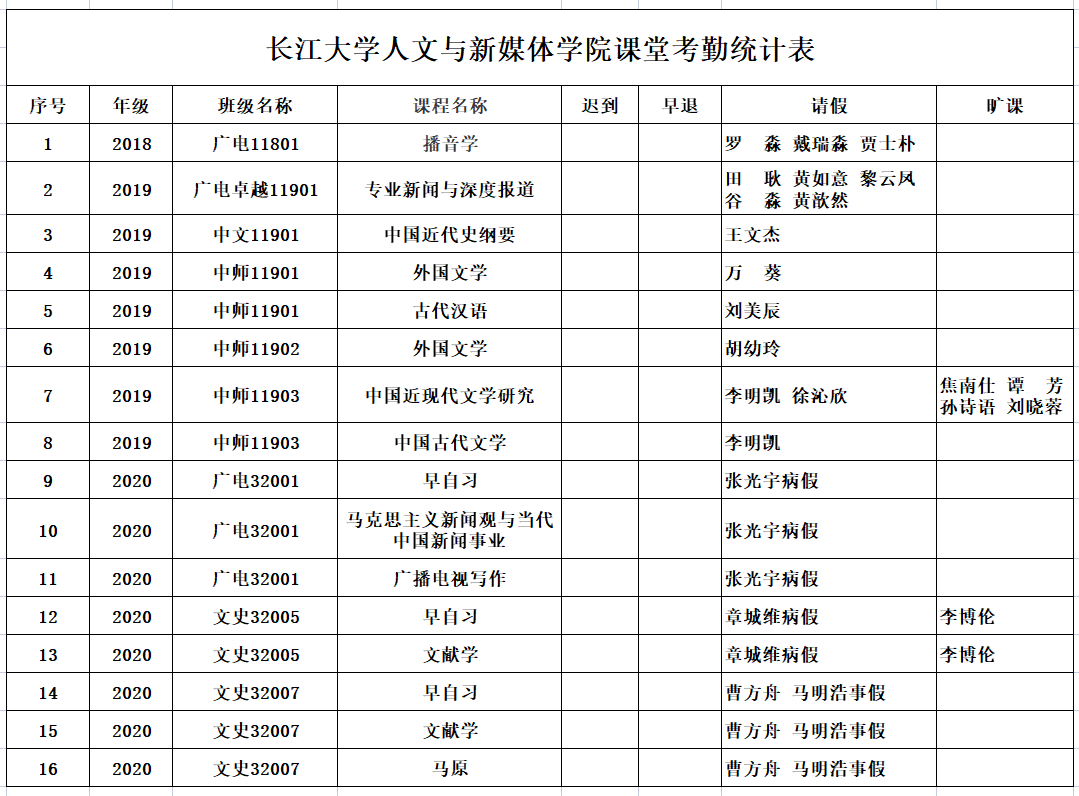 5月21日,公司组织员工干部对18、19、20级30个班的21门课程进行了45次课堂考勤,100%到课率29次,现将考勤结果公布如下:
