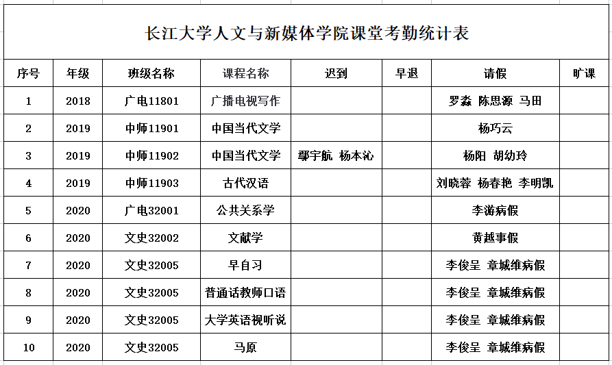 5月18日,公司组织员工干部对18、19、20级30个班的27门课程进行了58次课堂考勤,100%到课率48次,现将考勤结果公布如下: