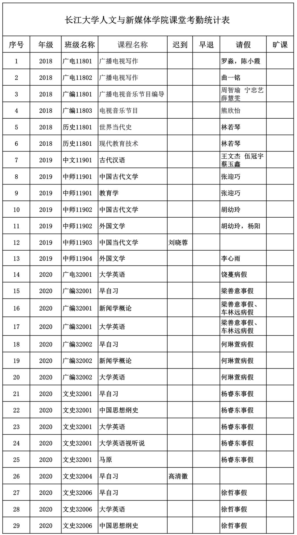 5月8日,公司组织员工干部对18、19、20级30个班的30门课程进行66次课堂考勤,100%到课率37次,现将考勤结果公布如下: