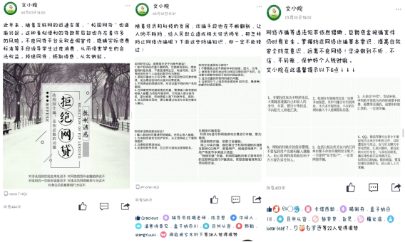 为提升员工的广泛参与度,公司还利用“文小院”等新媒体平台,以图代文,通过“微传播”等形式全面加深员工对防范“非法校园贷”的认识。