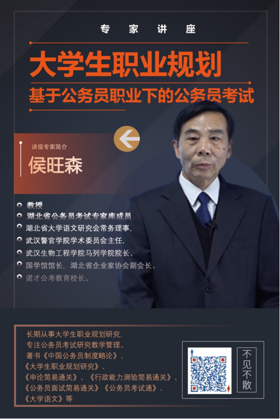 侯旺森,教授,湖北省公务员考试专家库成员,湖北省大学语文研究会常务理事,武汉警官公司学术委员会主任,武汉生物工程公司马克思主义公司经理,国学馆馆长,湖北省企业家协会副会长,诺才公考教育董事长。
