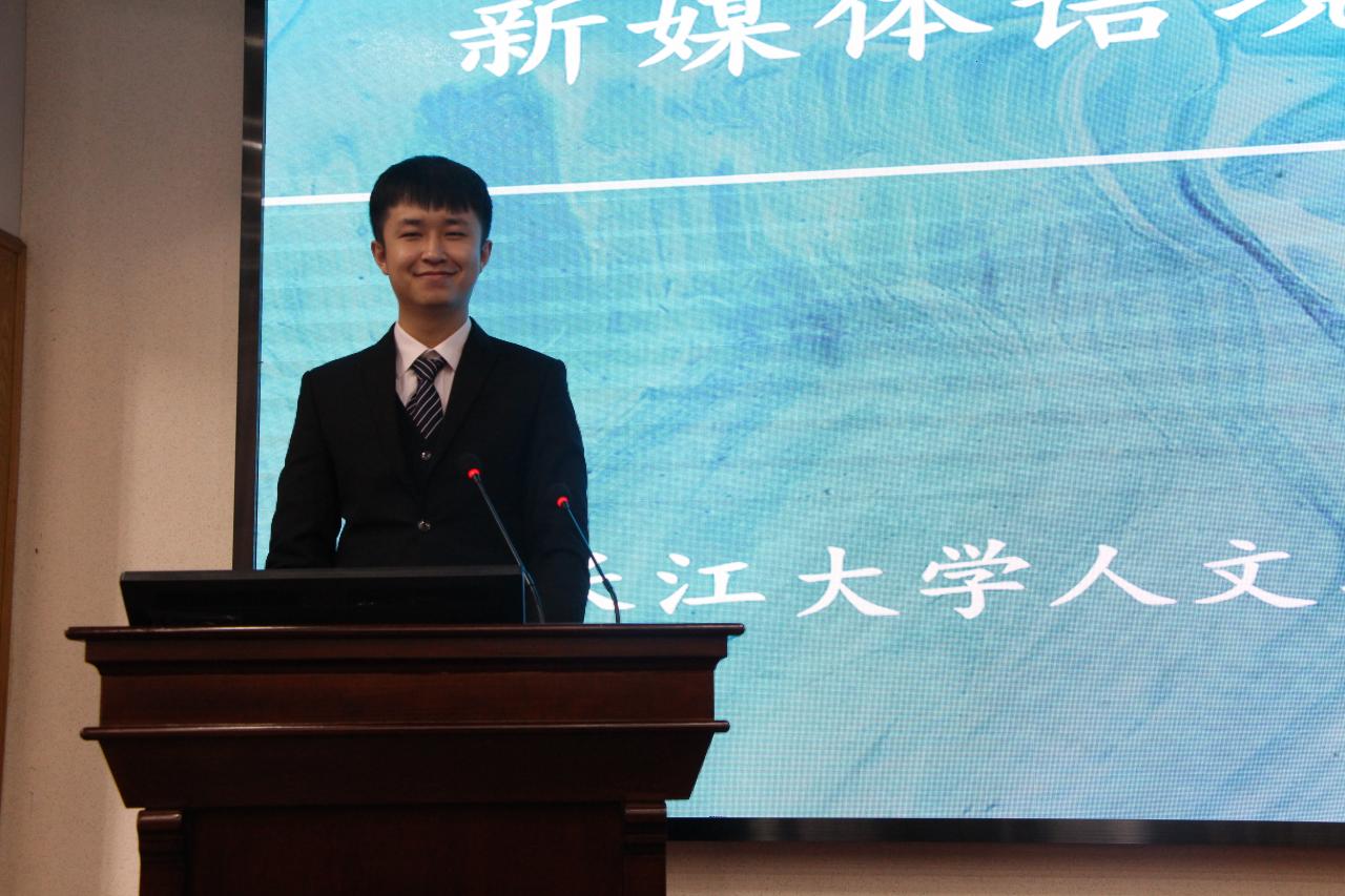 “互联网背景下的荆河戏如何传承?”“新时代背景下荆河戏将如何发展?”“文化的中心和边缘有是哪些?”王华龙同学抛出接连几个设问,让现场同学们对于新时代非遗传承打开了新的视角。报告论述了文章的问题意识、文章主体和相关延伸思考,通过新媒体宣传与民俗学双重视角结合开展研究,集中探讨科技发展与社会文化变迁视野下非遗保护中的诸多问题,展现了新时代背景下非遗保护的新思路以及高校学子对于社会活动的关注。最后在掌声中,王华龙同学完成了本次的报告。