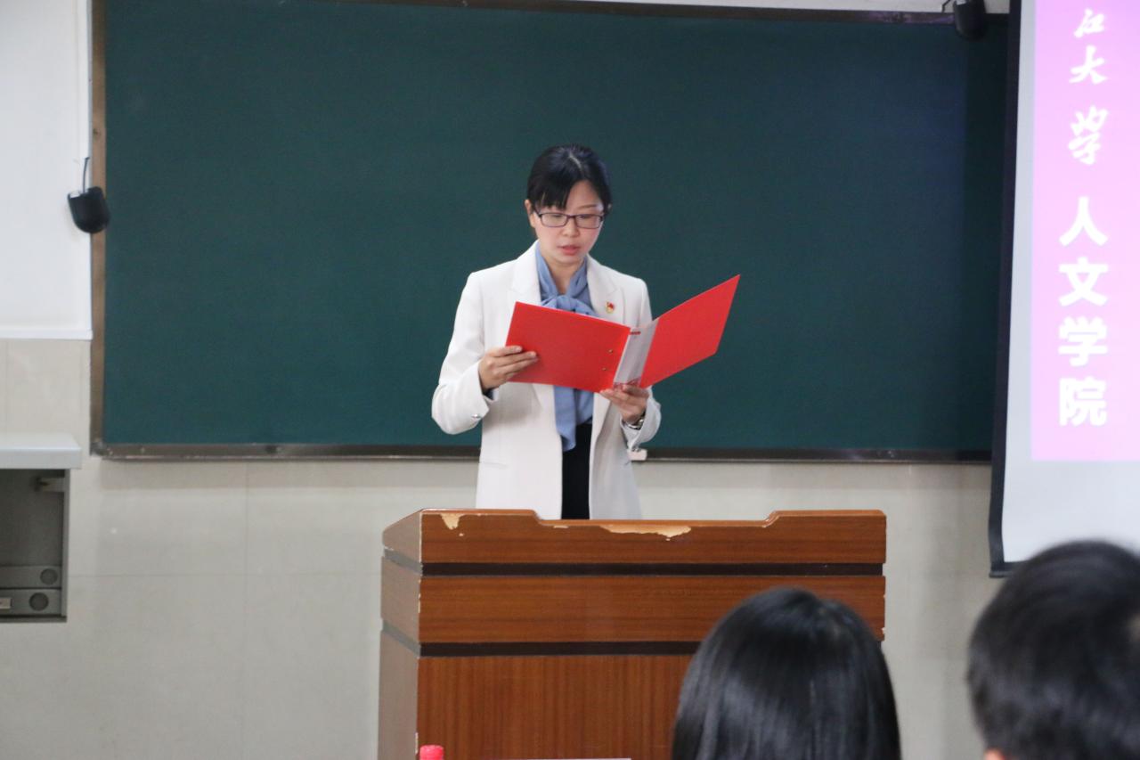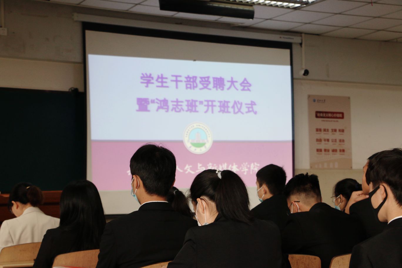 大会在庄严肃穆的国歌声中拉开帷幕。首先,严老师宣读了“鸿志”班成员名单。并由杨克非老师、胡世先老师分别为员工干部代表颁发聘书。