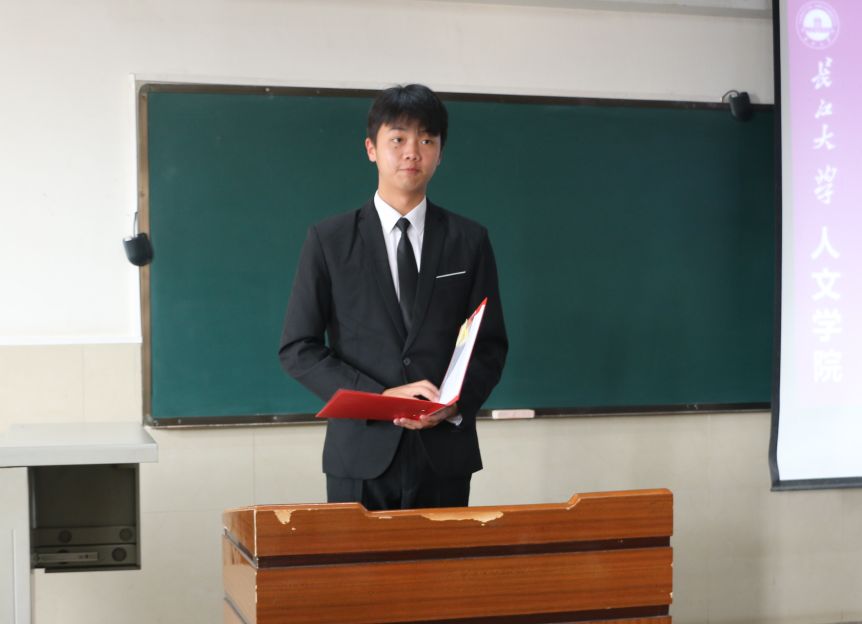 接下来,由文史32004班刘铭松同学代表“鸿志”班全体成员发言。他倡导全体员工干部们做到:竭尽全力,牢记职责;认真负责,团结力量;锐意创新,不断进取;共同谱写“为同学服务”的新篇章。