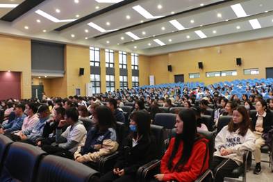 讲座伊始,员工胡罗珍学长通过讲述自己从一开始求职四处碰壁到拥有两家公司,营业额破亿的经历,告诉大家人生不容易十有八九,没有什么事情是过不去的,不放弃任何一点希望就一定可以获得成功。随后他强调了内驱力的重要性,要想做到“不放弃”,仅仅靠意志力、自控力是很难的,只有找到自己的内在驱动力,才能把这件事做好。讲座最后,胡罗珍学长将话题引回学习,通过向在坐的近400名大一新生讲解自己学习英语的经历说道:“读书与思考,是我们学习路上必有的两块敲门砖,只有将这两块敲门砖相辅相成的用好,我们才可以真正走进学习,拥有自己思考问题的方式,并以此惠及自己。”