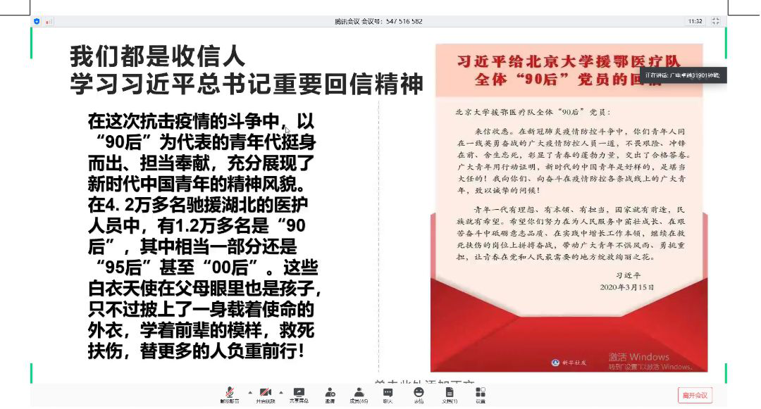 6月16日上午十一点左右,广电卓越31901支部全体成员于腾讯会议开展线上团会,这次班团会由广电卓越31901班的钟璐同学担任主持人。