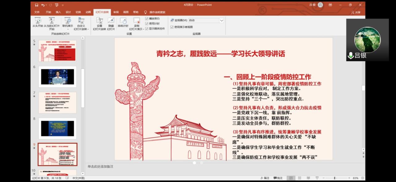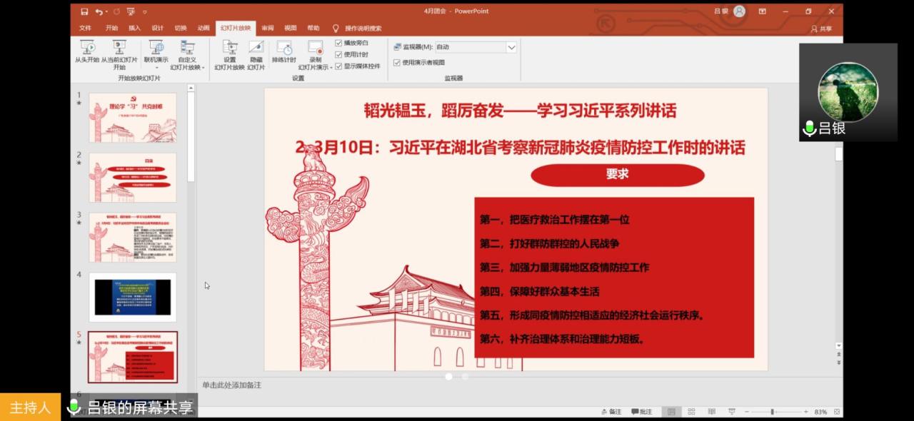 4月16日下午2:30,广电卓越31901支部全体成员于腾讯会议开展线上团会,由学习委员吕银主持会议。