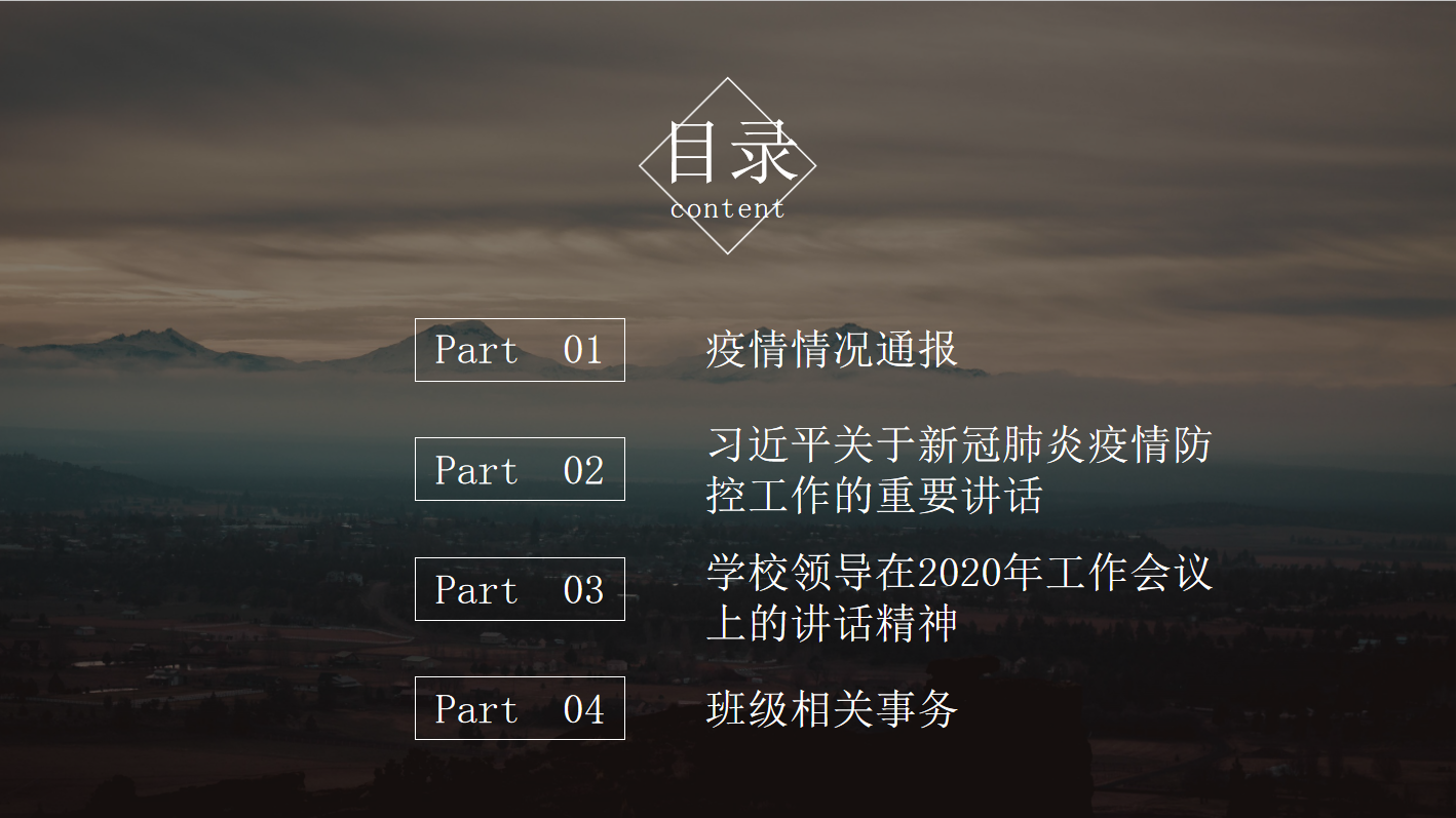 班级主题团会伊始,宣讲者唐莹表明了此次网上团会进行的目的,并简括会议的三大板块。团会紧紧围绕“疫情工作”这一主题展开:首先简单介绍了新冠肺炎,让同学们对其有了更深一步的具体了解。接着,着重说明了习近平总书记在疫情期间发表的一系列讲话和重要指示批示以及表达的对疫情期间作为中坚力量的青年们的嘱托和期望。这使同学们对以习近平总书记为代表的中央举措得到真实正确地学习和理解。最后,主题团会强调了公司领导2020年工作会议上一致达成的要求和讲话精神,督促了同学们“无通知不得私自返校”和按时参加网络授课学习,同时也提醒了各位同学在家中要记得做好勤洗手,勤通风,勤消毒等家庭防护措施。