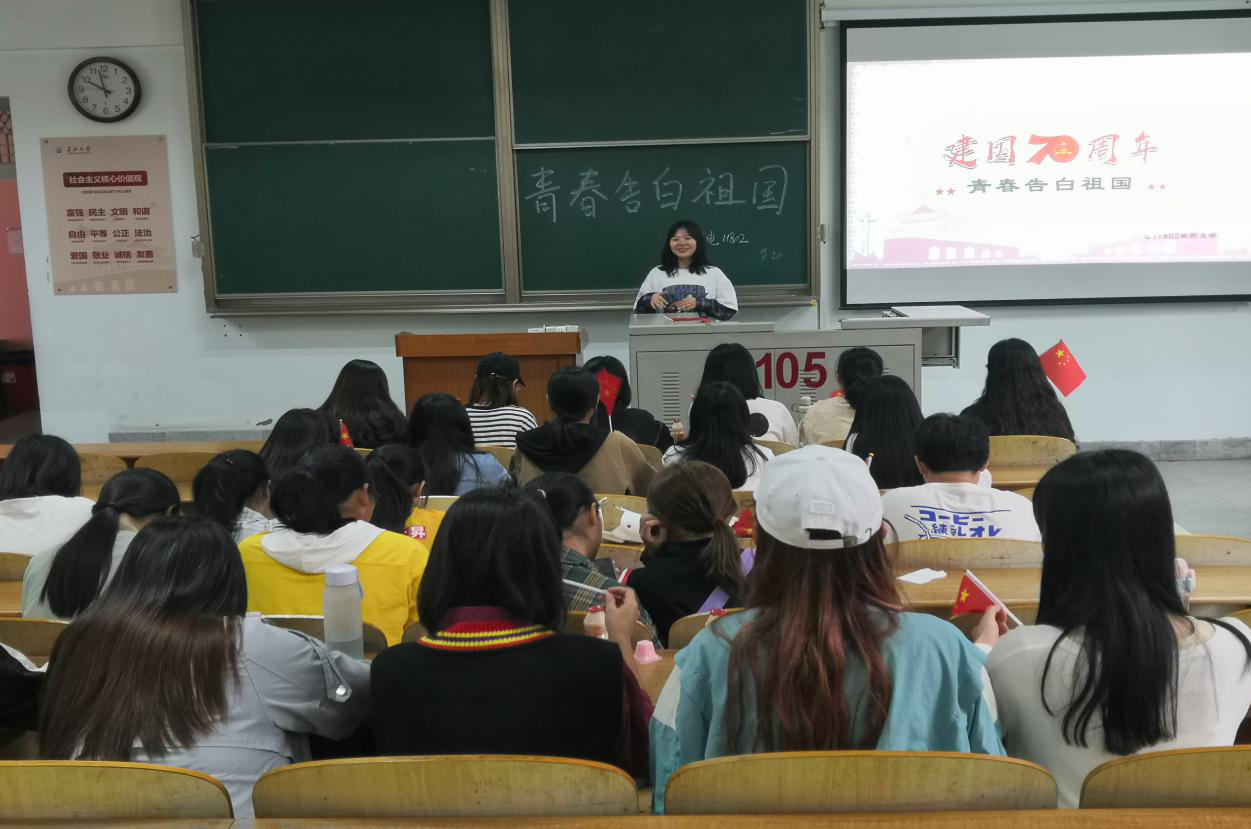 2019年9月20日,中文师范11701和11702班在13教D区423举行了以“青春告白祖国”为题的班会
