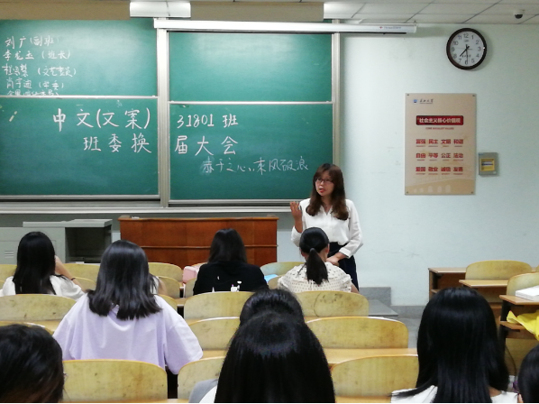 中文(文案)11801班的同学们在进行班委换届大会之后,严实老师对各位班委的工作进行了肯定之后,为大家讲解了相关安全知识。孙继老师和同学们分享了自己的老员工活,鼓励同学们好好学习,力争上游。