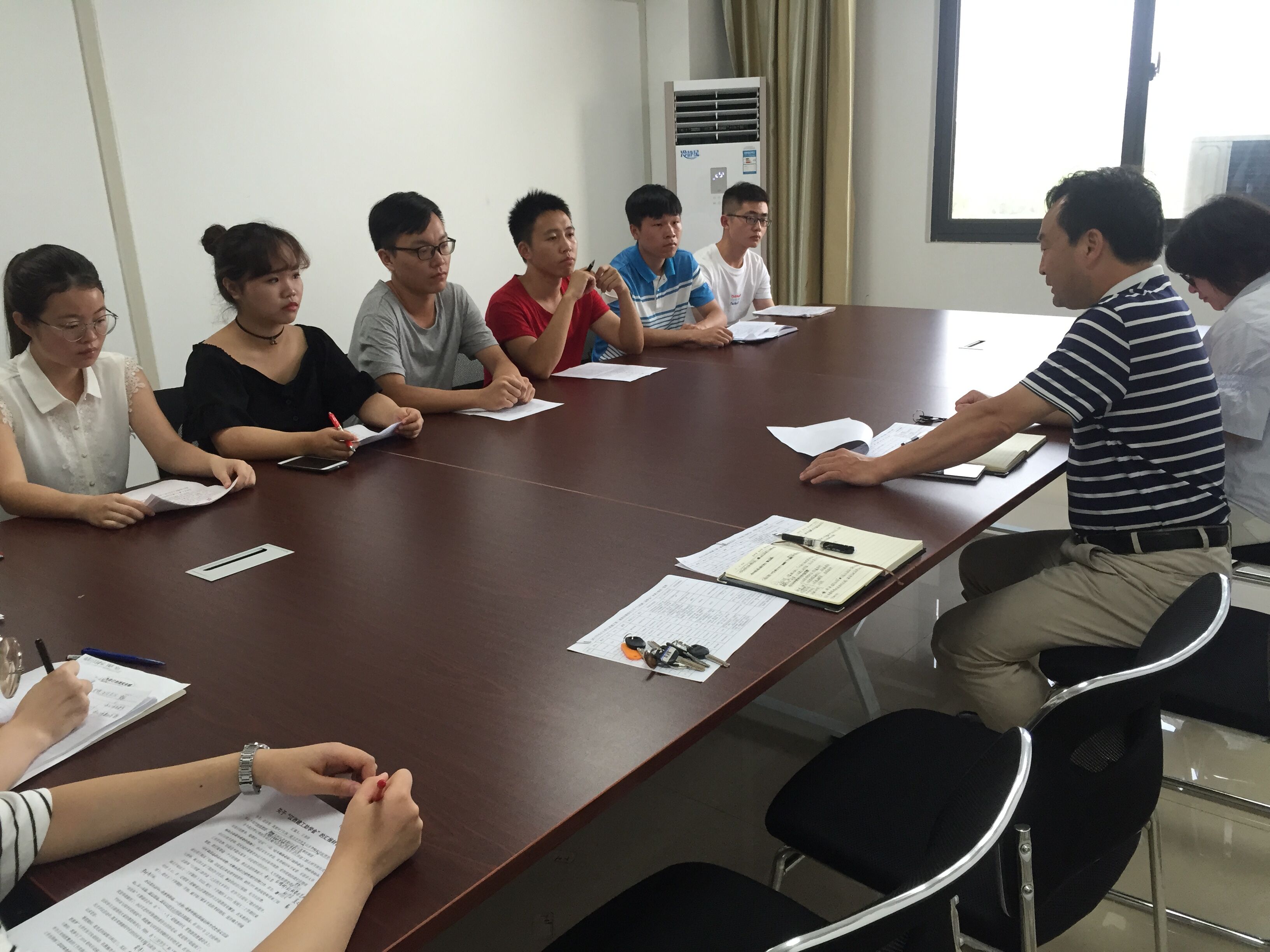 (通讯员:王圣洁)6月14日18:30许,“江西建工”助学金励志班座谈会在文科大楼731举行。出席本次座谈会的老师有文公司党委书记杨鑫,文公司辅导员陈娟,文公司辅导员李永琪。本次座谈会由杨鑫书记亲自主持,会上三位老师与10位获助员工进行了互动。