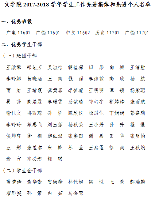 关于文公司2017-2018学年员工工作先进集体和先进个人名单的公示