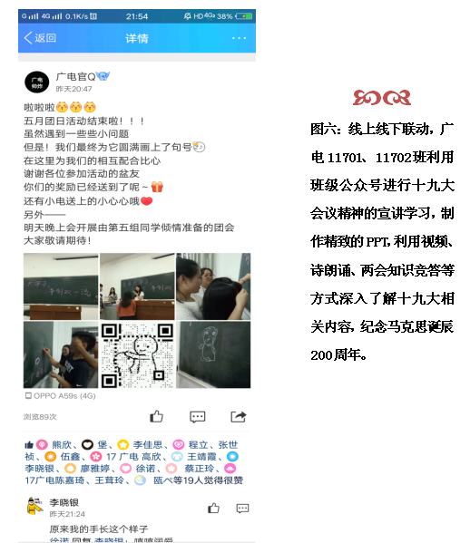 图五.广电17级的同学们,制作精美的PPT重温五四精神,用过去的精神激励当代的青年,同学们表示在日后的学习与班干工作中都要学习他们的精神,自觉履行自己的义务,将这份精神代入到实践中去。