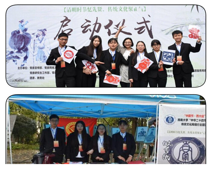 (通讯员 王华龙 )3月30日上午,以“清明时节忆先贤,传统文化聚正气”为主题的清明节活动在西南大公司庆纪念园隆重举行。best365英国体育在线的长江非遗学社一行7人应邀全程参与,并负责其中的习俗体验之剪纸展区。