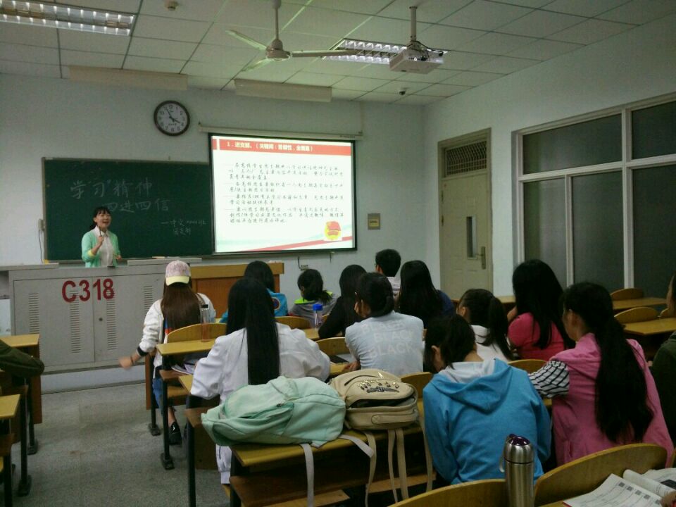 为深入贯彻落实习近平总书记重要讲话精神,9月28日下午4时许,中文11404班全体同学在13教D318教室开展了以“四进四信 学习精神 共筑中国梦”为主题的讨论会。