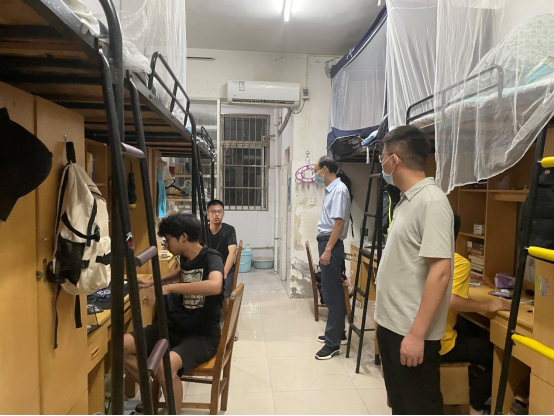 31日晚9时,公司全体领导前往搬迁后员工宿舍看望员工,查看员工们的入住情况,了解员工们在新宿舍区的宿舍生活并记录同学们的问题,以便及时进行解决,同学们对新宿舍良好的环境都感到非常满意。新学期,新面貌,新气象,此次搬迁工作顺利完成,为同学们在新校区的学习生活开了个好头,公司学子也将继续保持优良学风,开启新学期的学习生活。
