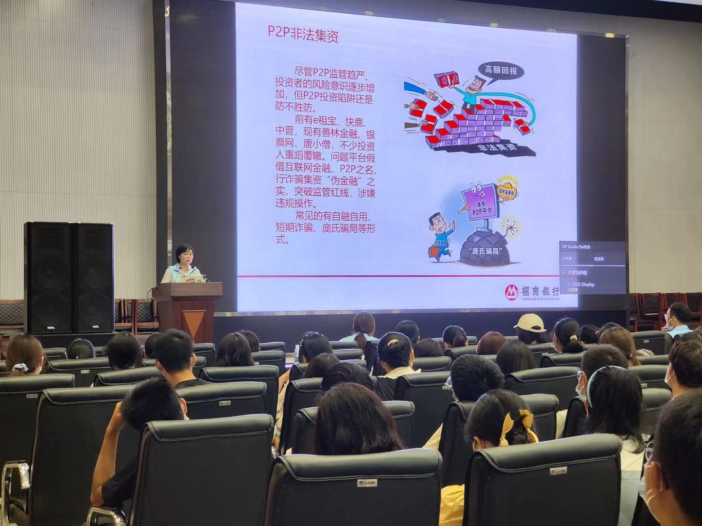 本次讲座以“金融知识进校园,老员工防骗指南”为主题,首先由招商银行荆州分行零售主管、金融知识讲师罗雅琴给大家讲解反诈知识。罗老师从多方面展开,由浅入深,问答互动。“什么是诈骗”“遇到诈骗怎么办”“怎样提高防诈能力”等问题成为讲座的焦点。在讲座上,同学们了解到了几种常见的诈骗手段和诈骗方式,深刻领会到了诈骗的社会危害性和严重性。