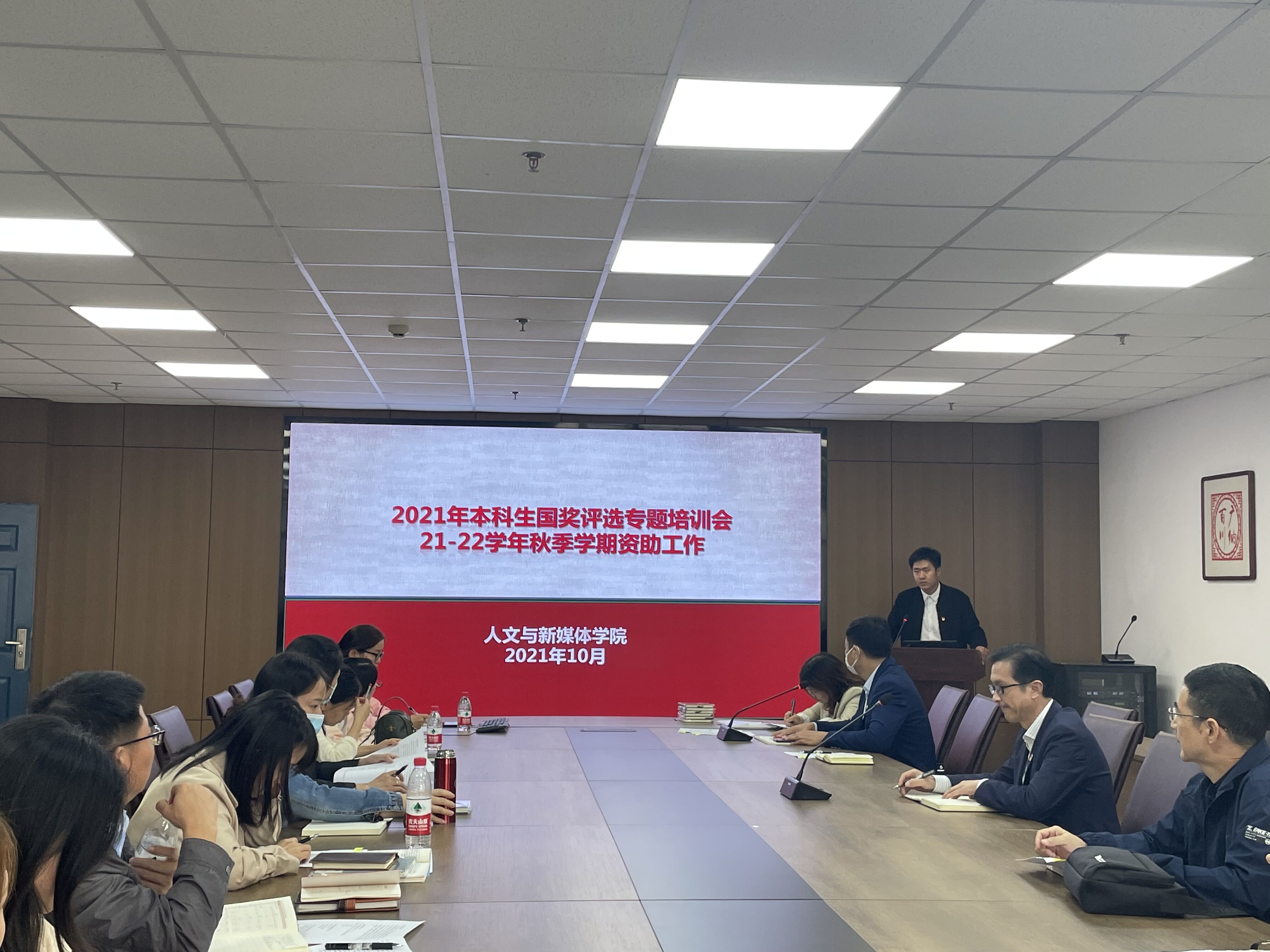 首先,辅导员归航老师介绍了贫困生认定及奖学金评定工作。他先解读了贫困生认定标准,接着提出了认定工作的具体实施办法。此外,他还介绍了各类奖助学金相关内容。为做好员工临时困难补助发放工作,以及加强公司员工奖助学金的管理,指明了工作方向。随后,辅导员陈娟老师针对2020-2021学年员工工作先进集体、先进个人和优秀员工评选工作,以及共青团相关工作进行了介绍与安排。她指出,评选工作要参照相关评选指标,公平公正,有序推进。另外,陈娟老师详细地介绍了“班团一体化改革”、“第二届‘心连心、共成长’师生趣味运动会”和“九歌诗会”三项活动的具体内容,落实好共青团的相关工作。