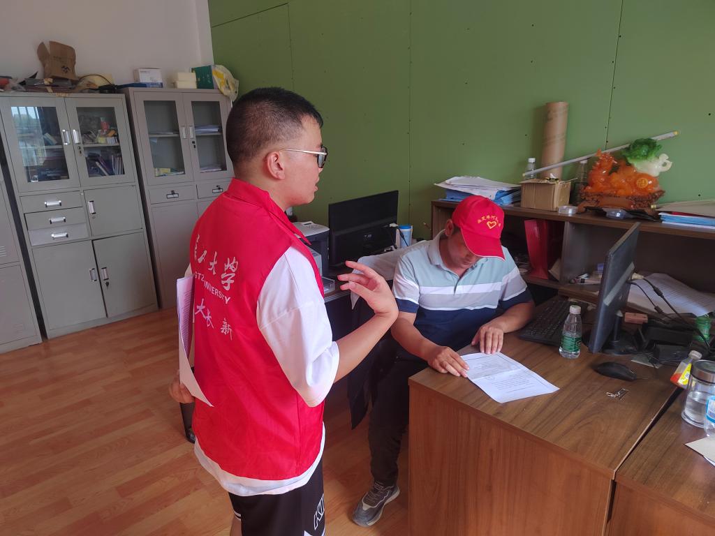 在到达调研地后,实践队根据工作分工安排,分为两个小组进行实地调查走访。一组成员来到阳光村党员群众服务中心,对当地的党员干部进行采访。着重询问了村组的发展状况,小组通过村民委员会主任了解到当地农业此前受制于土地平整状况不佳、基础设施比较落后导致农作物种植收成滞涨,个人收入难以增加的情况。但在国家乡村振兴战略的大力支持下,农业生产工具已全面实现机械化,相关生产基础设施也在逐步修缮,产业发展潜力得到挖掘。同时,二组成员来到当地村民住宅访谈了解乡村发展状况,村民们普遍反应:自“乡村振兴”战略实施以来,当地干路得到了翻新,扩增了交道路线,丰富了当地产业。但通过进一步访谈了解,阳光村虽然不属于贫困村范围,但当地仍存在产业单一、农业生产技术比较落后,产品销售路径窄等困难与挑战。明懿团队在采访结束后向当地村民宣讲了习近平总书记的新思想以及关于乡村振兴的重要论述,引导村民听党话,跟党走,感党恩。