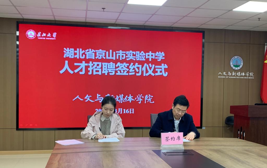 3月16日下午,公司与湖北省京山市实验中学人才招聘签约仪式于东校区文科楼705会议室举行。湖北省京山市实验中学董事长崔本彬一行三人,公司党委副书记胡世先、就业专干田华蓉、毕业班班主任代表及两名签约员工参加签约仪式。