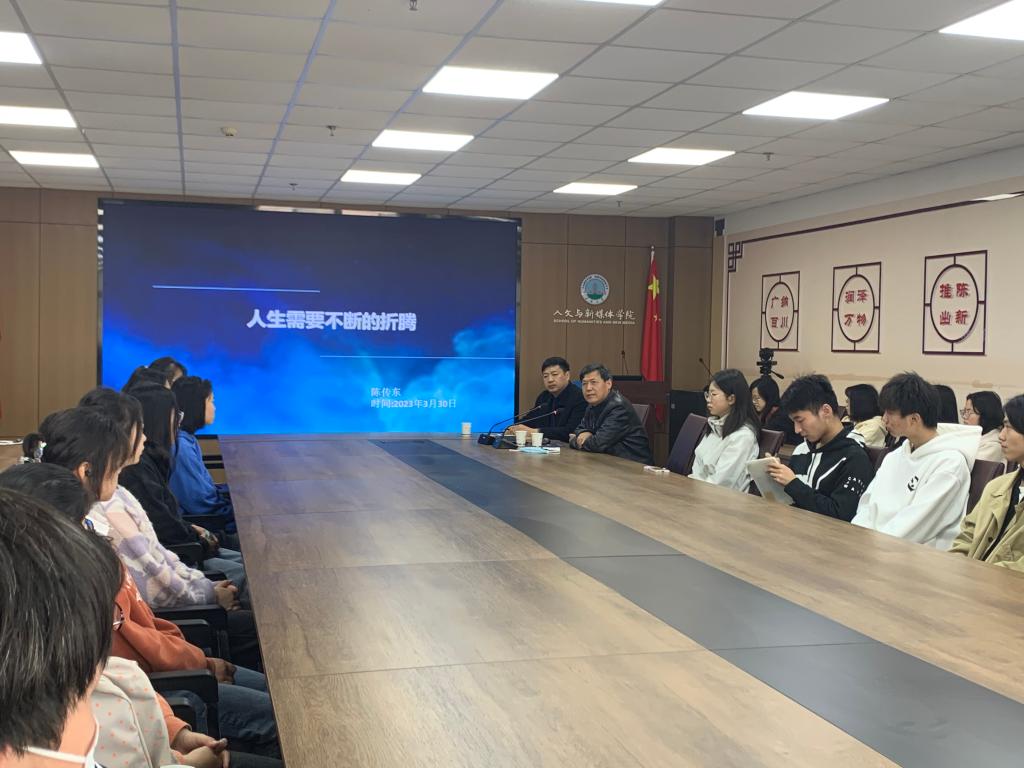 3月31日上午10时,best365英国体育在线员工、深圳中天精装股份有限公司执行经理陈传东的成长就业指导讲座在东校区文科楼705室顺利进行。公司党委书记杨克非、公司党委副书记胡世先、就业专干以及部分大三、大四同学参与本次讲座。