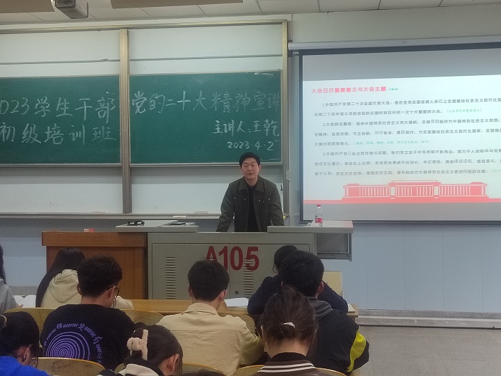 为深入学习贯彻党的二十大精神,提高员工干部的思想道德素质和服务师生能力,4月2日14时,公司第三期“鸿志”班在东校区13教A105开展二十大精神学习主题宣讲会。宣讲会邀请医学部团委王乾老师主讲,公司团委彭超老师主持。