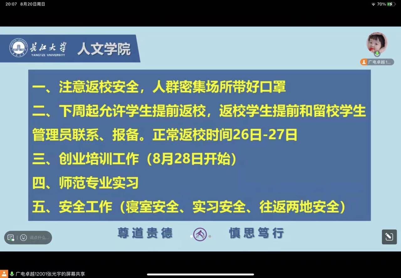 8月21至24日,公司分别组织各班级召开了“梦想起航,安全至上”为主题的2023年秋季学期开学前安全教育班会,就开学工作、安全教育、学业规划等方面进行讲解说明及要求部署。此次主题教育班会由年级辅导员、各班班主任主持,全体本科生和研究生参会。