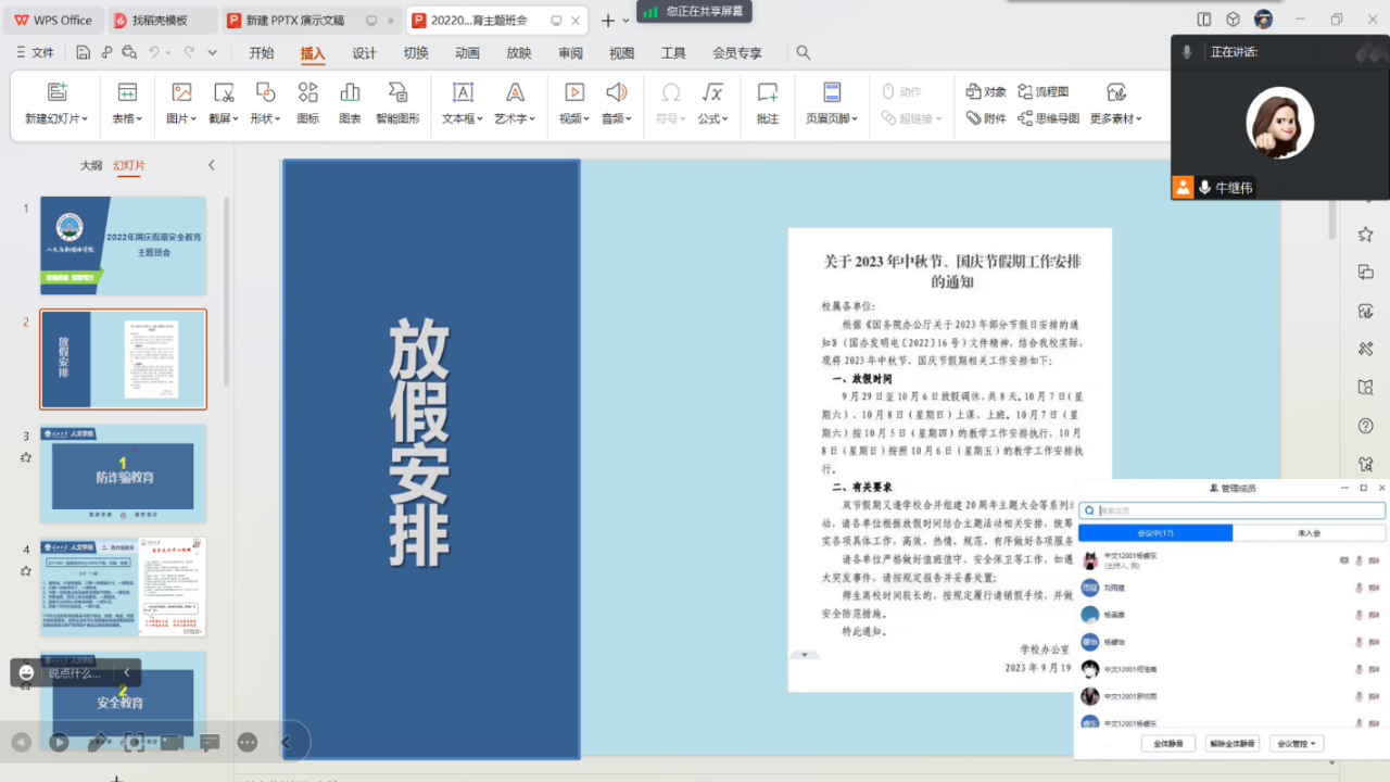本次中秋、国庆假期安全教育主题班会,让同学们进一步提高了安全防范意识,对确保同学们假期生活的安全与稳定产生了积极的影响。