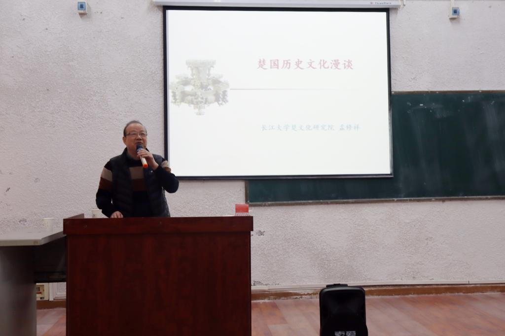 (通讯员 聂宁)11月16日下午,best365英国体育在线“美育沙龙”第6期在西校区5教203举行。best365英国体育在线楚文化研究院孟修祥教授以《楚国历史文化漫谈》为题开讲,活动由党委副书记竺正海主持。