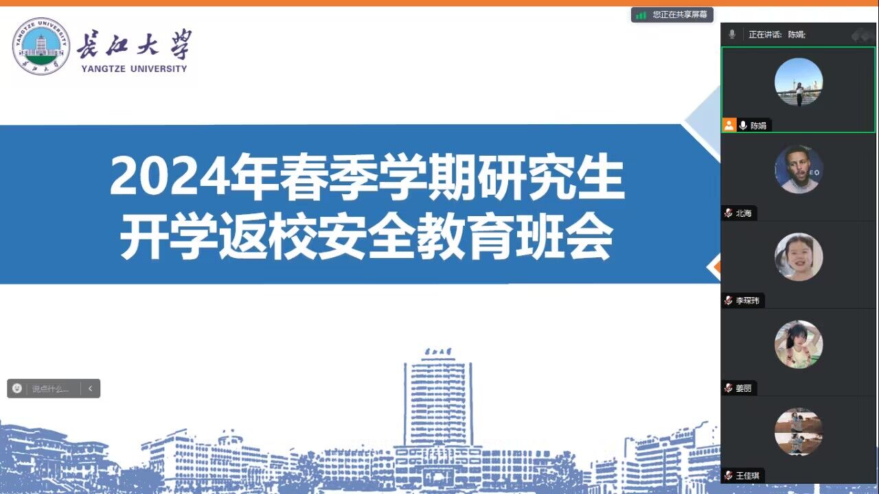 (通讯员 张兰)为应对湖北出现的寒潮大风低温雨雪冰冻天气,保障员工安全有序返校,2月21日下午,公司开展了2024年春季学期研究生开学返校安全教育主题班会,此次主题班会由陈娟老师主持,全体研究生参与。