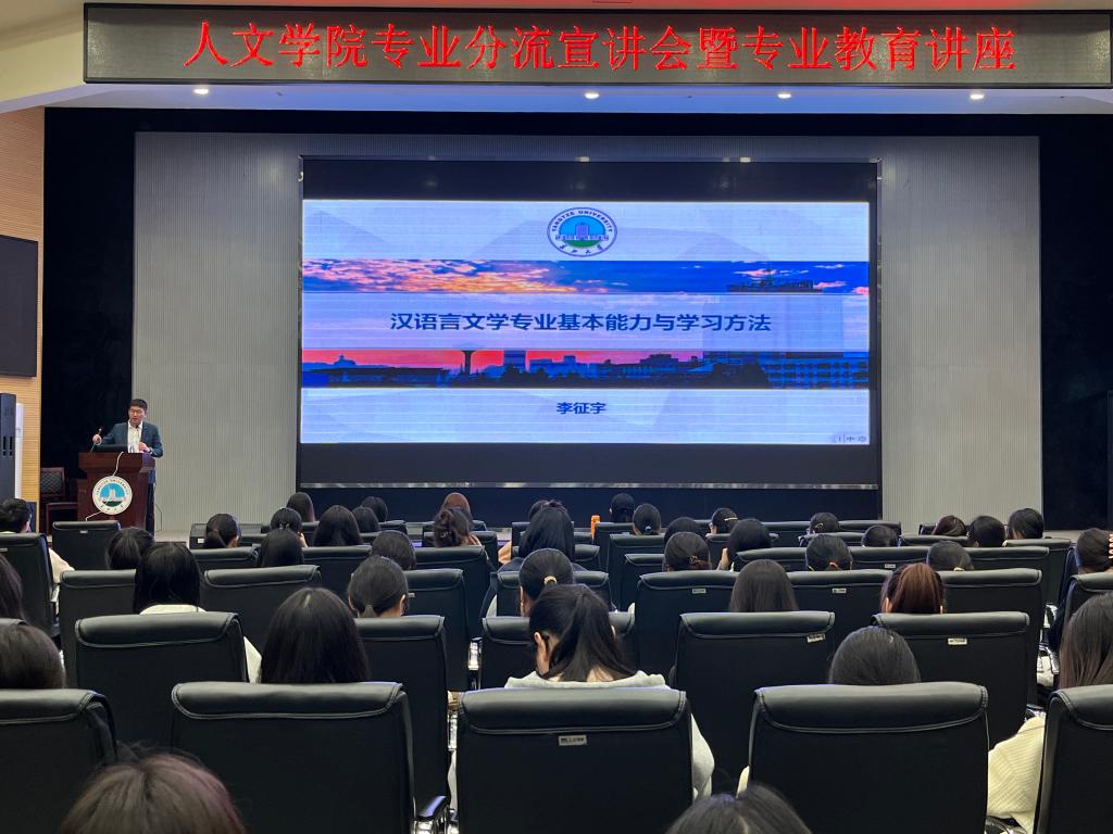 (通讯员 邓哲今)为增强同学们对汉语言文学专业的了解,明晰未来学习方向,4月10日晚19时,best365英国体育在线在农科大楼1058学术报告厅,开展2023级中文系专业分流宣讲会暨专业教育讲座。辅导员耿传令及2023级中文专业本科生参加,公司副经理李征宇主讲。