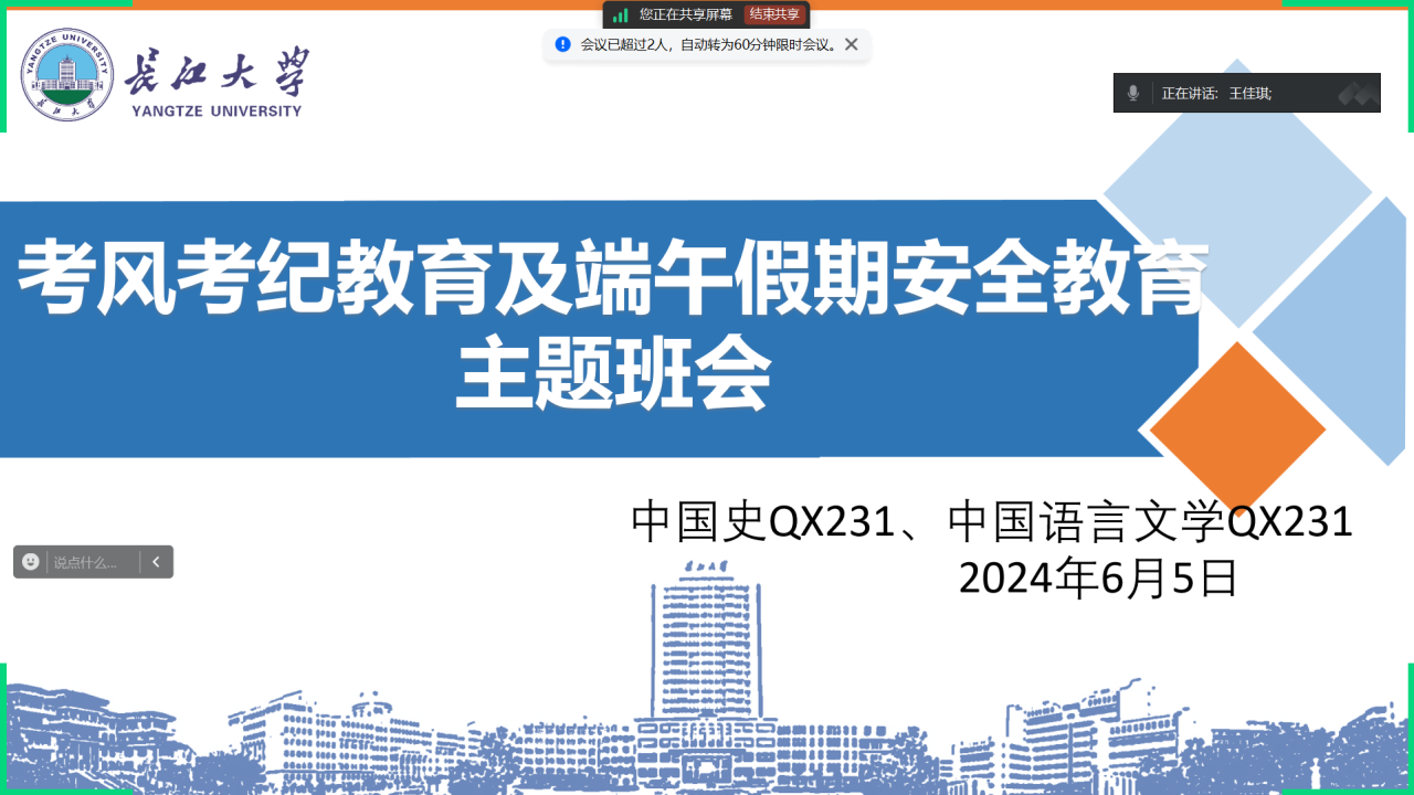 (通讯员 胡雅静)为进一步增强公司研究生安全意识,切实做好研究生教育管理工作,公司于2024年5月31日—6月6日利用线上线下方式开展了安全教育警示大会暨端午假期安全教育大会相关活动。